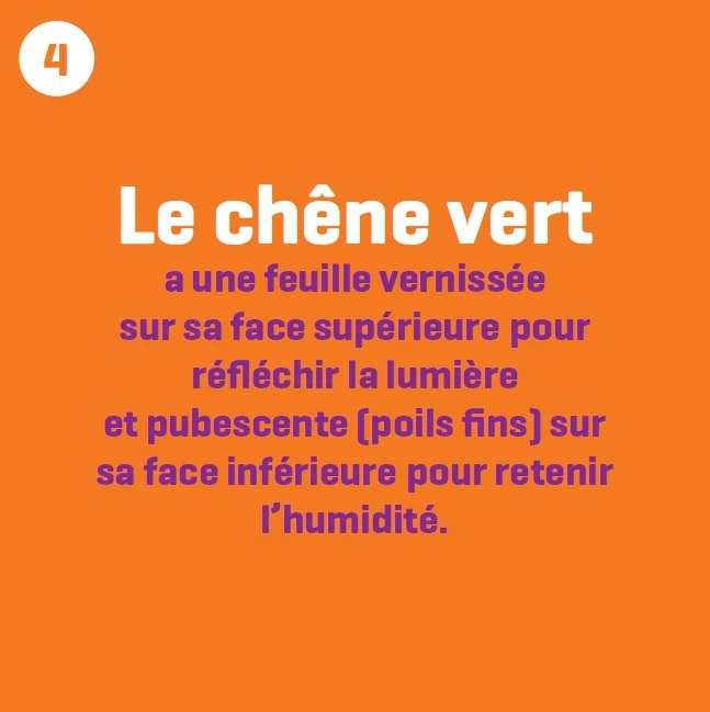 Cet arbre est le prince de la garrigue, aux feuilles persistantes, cirées sur le dessus et couvertes d’un velour blan- châtre ou pubescente en dessous.