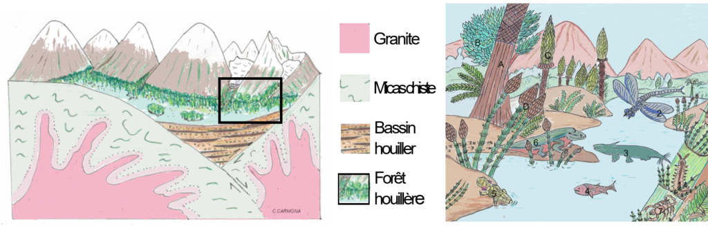 [3] Le Carbonifère est une période géologique du Paléozoïque (de −359 à −299 millions d’années) caractérisée par la formation abondante de charbon